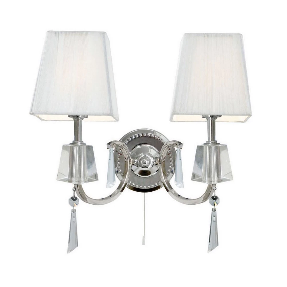 Moderne Wandleuchte mit weißen Stoffschirmen und Kristallelementen exklusive Leuchtmittel 2 x G9 33 Watt