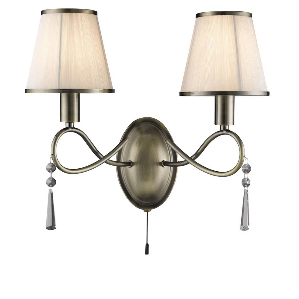 Klassische Wandleuchte mit Stofflampenschirmen und Kristallelementen 2-flammig für Leuchtmittel 2 x E14 40 Watt