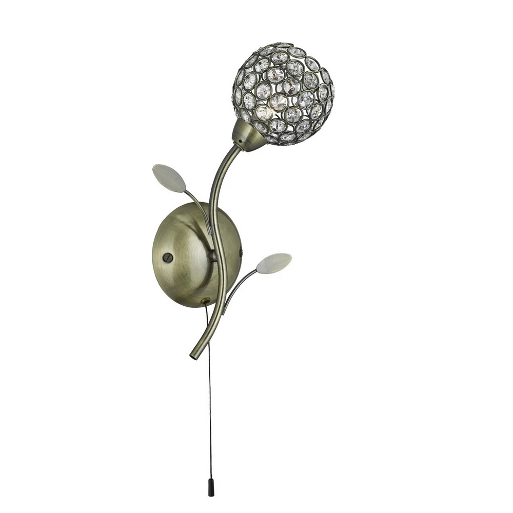 Vom Stiel bis zur Blüte ist hier alles durchdacht. Zentrum des schönen Ensembles ist der Leuchtenkörper, aus dem der Leuchtenarm entspringt. Dezent verteilt finden Sie hier filigranes Blattwerk aus Metall. Höhepunkt der schönen Wandlampe ist der Lampenschirm, der sich aus einer Vielzahl von eingefassten Glaskristallen zusammensetzt und wie ein schwerer Blütenkopf geformt ist. Hier bricht sich das ausfallende Licht und lässt ein brillantes Feuerwerk aus Licht entstehen.