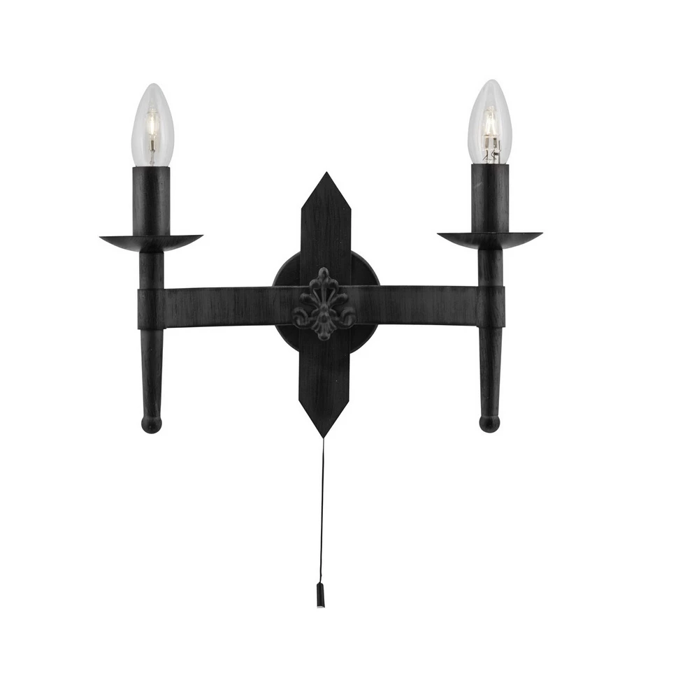 Robuste Wandleuchte 2-flammig in matt Schwarz mit Zugschalter