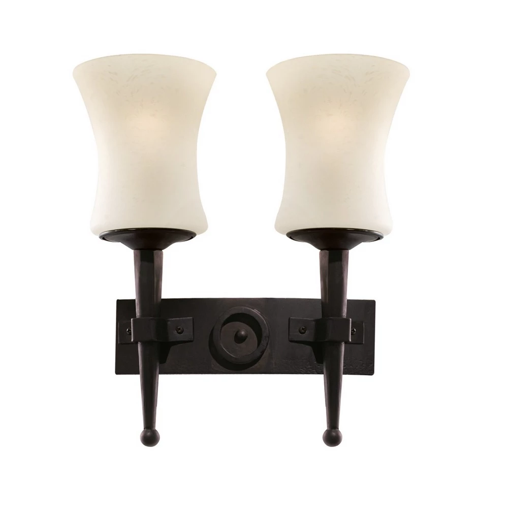 Mit einem kraftvollen Auftritt beeinflusst diese großartige Wandleuchte die Stimmung in Ihren vier Wänden. Robust und stabil ist die Wirkung dieser 2-flammigen Beleuchtungslösung. Schwer und dunkel, aber sehr attraktiv, zeigt sich der Leuchtenkörper. Aus braun/schwarzem Metall geschmiedet bilden die schlanken Scavogläser in Weiß einen willkommenen Gegensatz und bilden ein gelungenes Ensemble mit den derben Metallelementen.