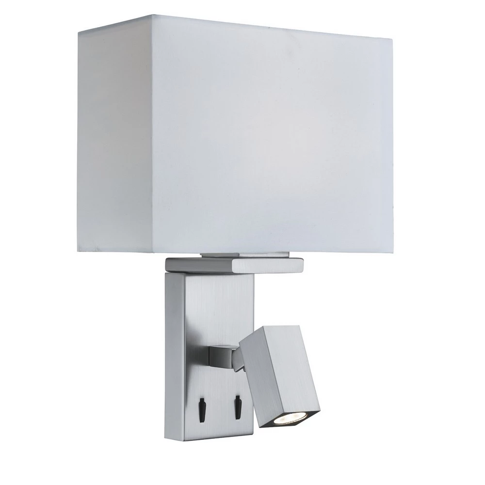 Wandleuchte mit Lampenschirm aus Kunststoff und zusätzlichem LED-Arm für Leuchtmittel 1 x E27 40 Watt, LED inklusive