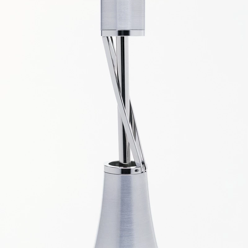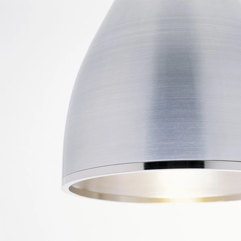 Der Strahler besteht aus einem gebürsteten Aluminium, vernickelte Zierringe und das silberne Dreh-/Kippgelenk komplettieren das schicke und moderne Design. Erhältlich ist der Strahler in zwei Größen und wird mit einem runden Deckenbaldachin geliefert.