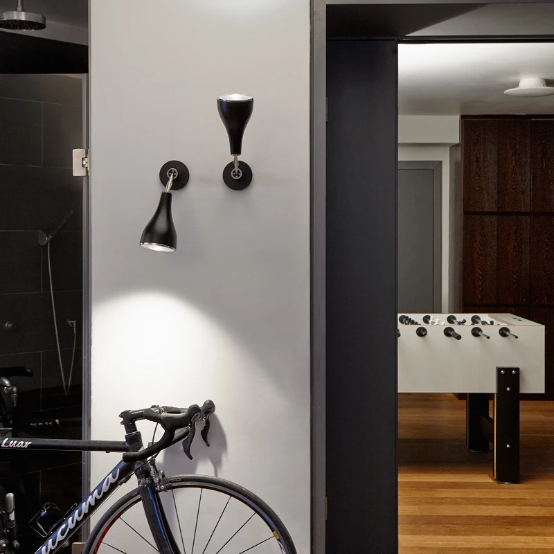 Schlicht und auf das Wesentliche reduziert passt sich der Strahler One Eighty jeder Raumsituation an und kann sowohl an der Decke wie an der Wand platziert werden. Sein gerichteter Lichtstrahl bewirkt eine punktuelle Beleuchtung, mit der bestimmte Bereiche oder dunkle Ecken direkt angestrahlt werden können. In Verbindung mit den verschiedenen Verstellmöglichkeiten – drehbar um 350° und um 90° kippbar – erreicht das Licht des Strahlers jeden Punkt im Raum.