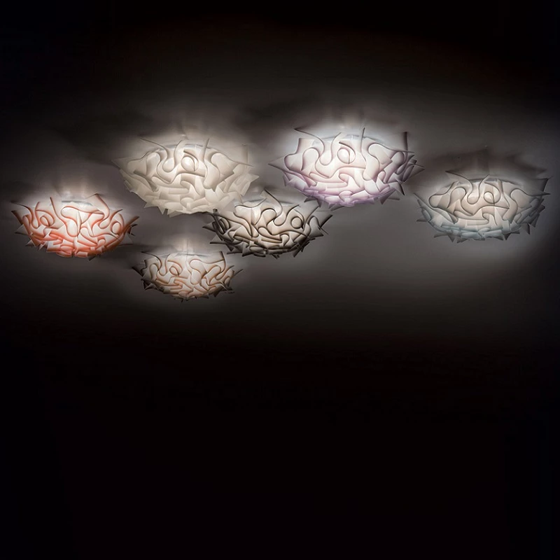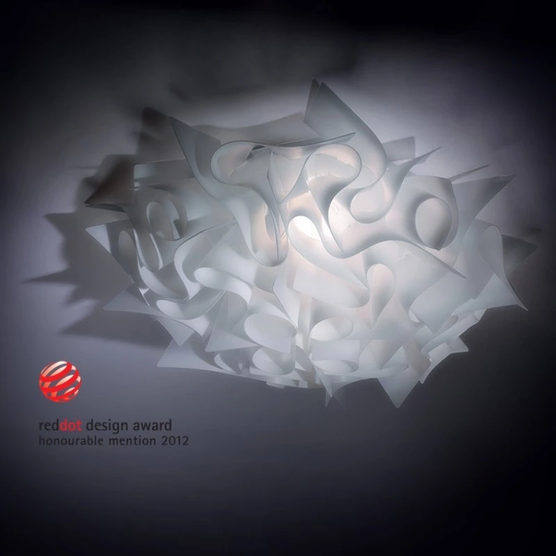 Veli, von Designer Adriano Rachele für Slamp kreiert, ist eine Leuchte, die sich durch Design und Material schon selbst als Highlight definiert. Ihre gekräuselte Struktur wirkt textil, jedoch ist sie aus Opalflex, einem neuartigen von Slamp patentiertem Kunststoff mit einzigartiger Lichtdiffusion.