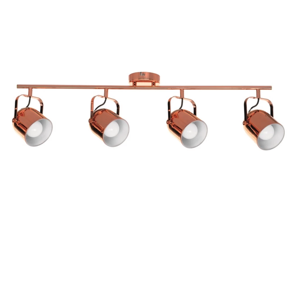 Die komplett in Kupfer gehaltene Strahlerleuchte lässt sich besonders gut integrieren, wenn im Wohnbereich schon kupferfarbige Accessoires und Einrichtungsobjekte vorhanden sind.