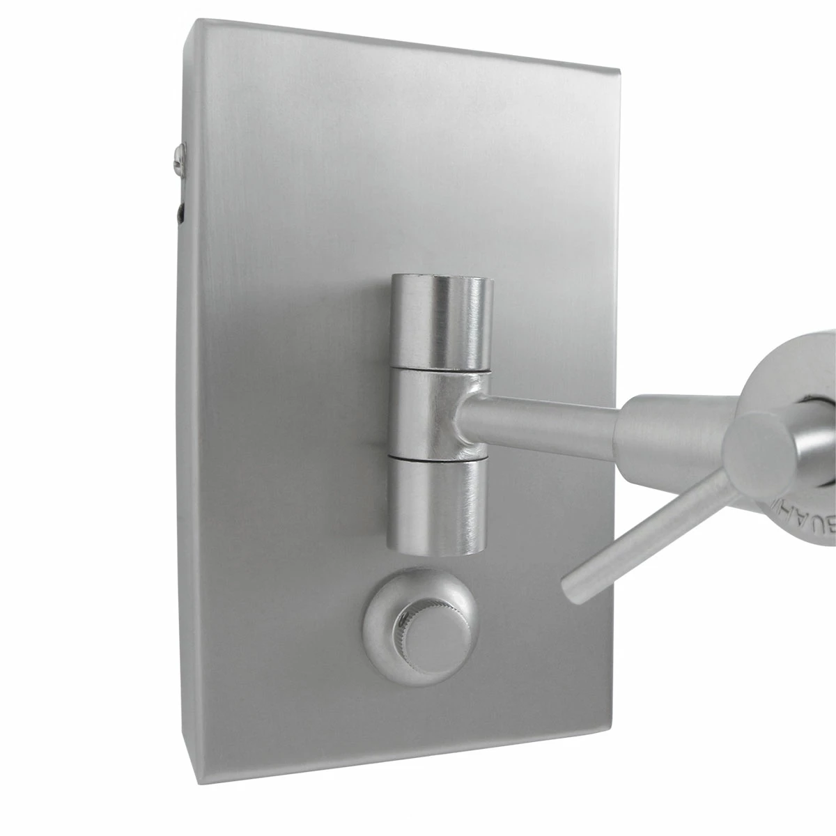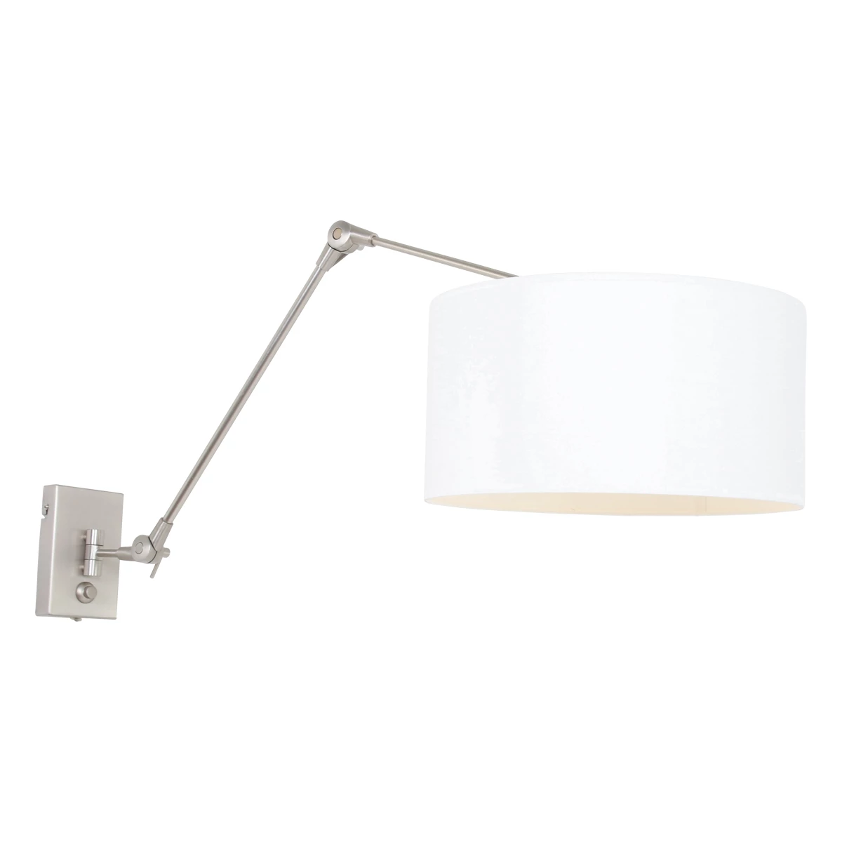 Diese Wandleuchte hat einen langen schwenkbaren Klapparm, damit Sie Licht bekommen, wo Sie es wollen. Der Dimmer ist in die Wandplatte integriert. Der Lampenschirm hat einen Durchmesser von 35cm.