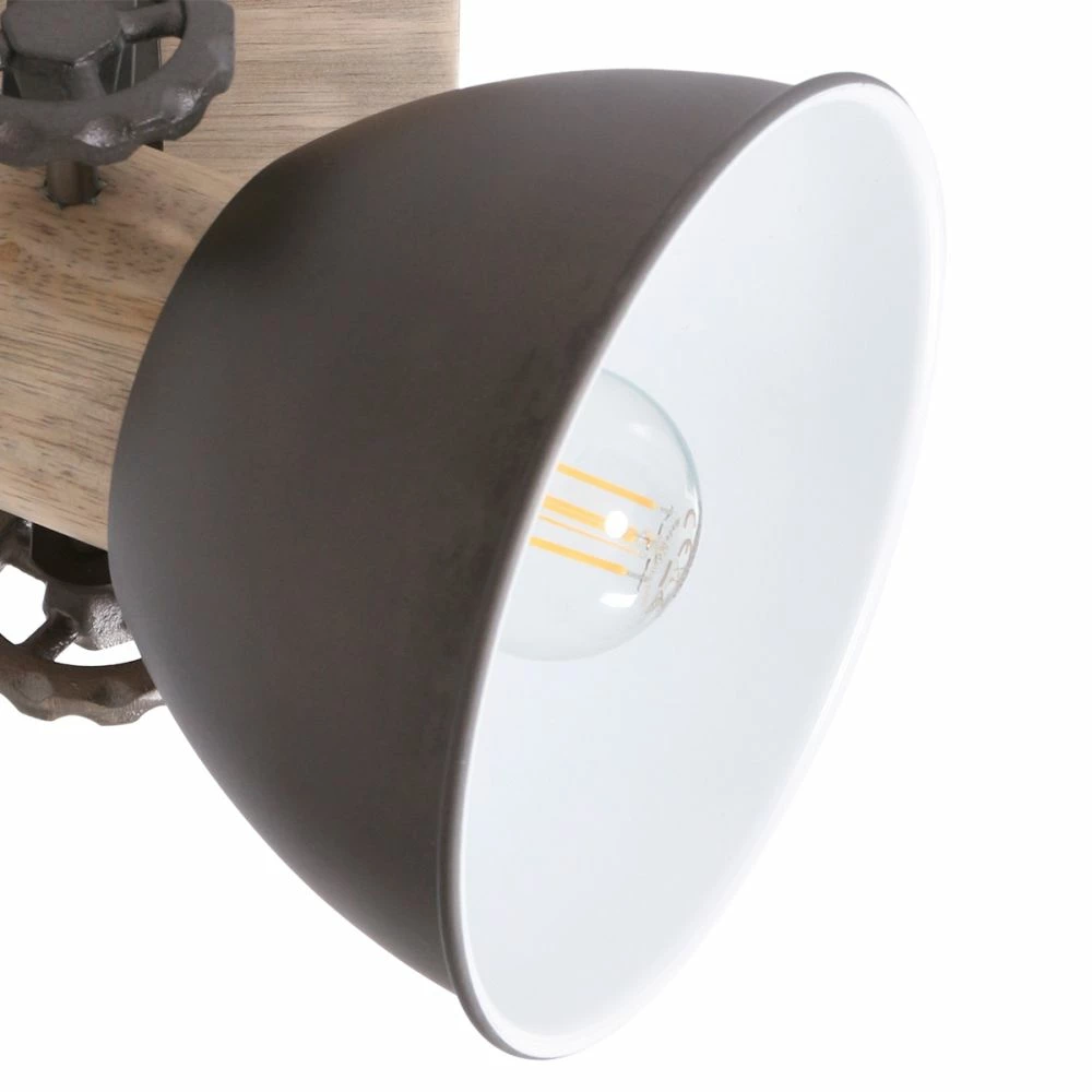 Dieser industrielle Spot ist dreh- und kippbar und über große Einstellräder einstellbar. Er verfügt über eine E27-Fassung, die für alle Lichtquellen bis 60 Watt geeignet ist. Dimmbar über einen externen Dimmer. Er besteht aus Metall und Holz. Die Leuchte hat Holzakzente. Der Durchmesser des Schirms beträgt 15 Zentimeter und die Gesamthöhe der Leuchte beträgt 19 Zentimeter.