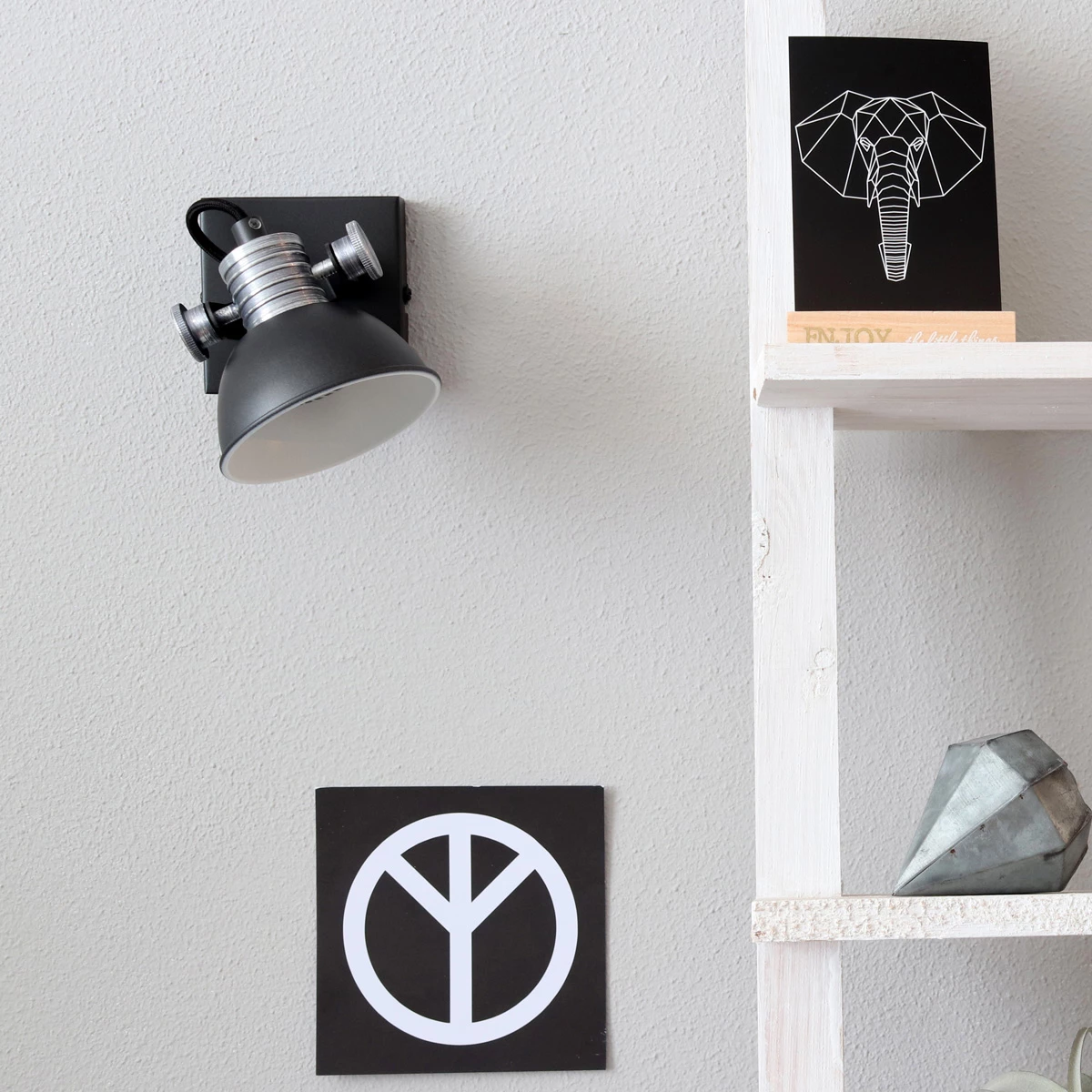Die 1-flammige Leuchte richtet das Licht dorthin, wo Sie es benötigen, denn der ganze Schirm lässt sich auch drehen. Mit Brooklyn erwerben Sie eine Leuchte, die Sie je nach Bedarf an die Wand oder auch an die Decke montieren können.