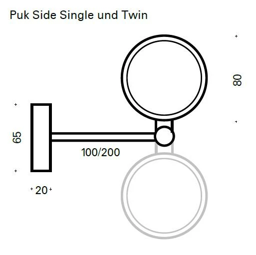 Der Durchmesser vom Wandsockel beträgt 6,5cm und die Armlänge, die drehbar ist, beträgt 20cm.