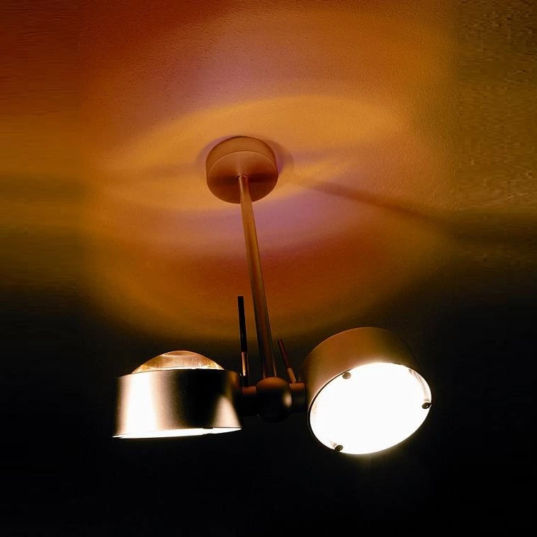 Die Leuchte ist erhältlich in, Nickel matt gebürstet, Chrom matt und Chrom.Für diese Leuchte benötigen Sie – je nach Zusammenstellung entweder 1 Glas + 1 Linse pro Leuchtenkopf, oder 2 Linsen pro Leuchtenkopf, oder: 2 Gläser pro Leuchtenkopf.