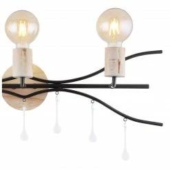 GLOBO E27 Wandleuchte aus Holz und Glas stäbe matt länglich Geäst 3-flammige Wandlampe schwarz natur