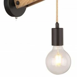 GLOBO E27 Wandleuchte aus Holz und Hanfseil matt ohne Schirm Wandlampe schwarz natur mit Schalter